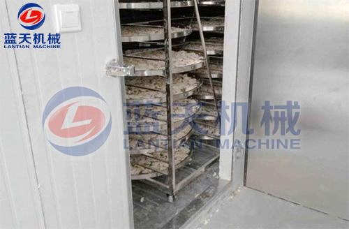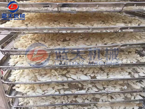 1、高濕低溫階段:溫度小于50℃,范圍為40-50攝氏度,避免高溫高濕造成山藥顏色的變化。觀察山藥表面水汽變化,淮山片的表面開(kāi)始形成水汽,冷凝變成水排出烘干房外,隨時(shí)除濕,這段時(shí)間應(yīng)在3-3.5小時(shí)。