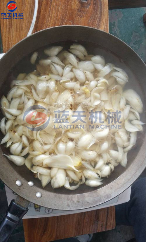 第二步:將清洗好的百合掰成百合鱗片,然后放入燒開(kāi)的鍋里進(jìn)行蒸煮,整個(gè)過(guò)程持續(xù)5-8分鐘。