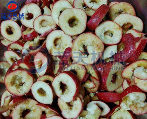 第二步:洗凈山楂果后,要盡快擦干其外表的水分,再進(jìn)行切片處理,需要去除或保留果核?,F(xiàn)在也有專門(mén)的切片機(jī)器,效率很高,且切片的厚薄均勻,一般在3mm左右。