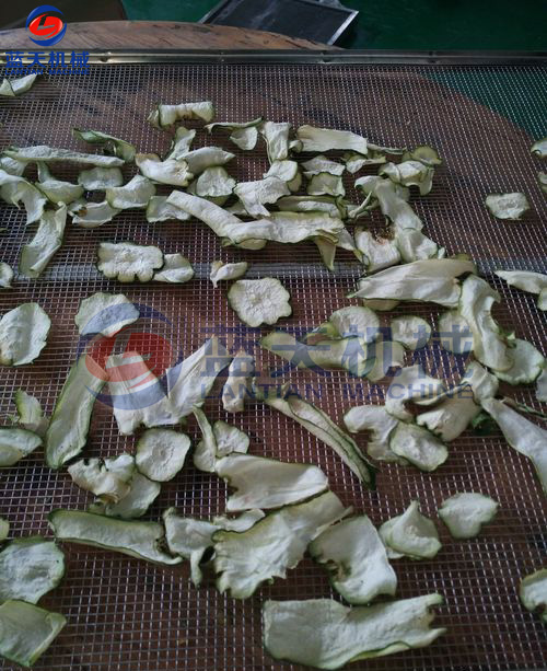 將物料車推入烘干房,設定熱泵烘干機運行參數(shù),烘干過程前段1-2小時以升溫為主,中段開始升溫加除濕,持續(xù)16小時后,烘干期間注意觀察佛手片的實時烘干情況,直到佛手片烘干成功。整個過程無人值守,用主機可以實現(xiàn)整個系統(tǒng)的烘干除濕自動進行,期間無污染物排放,節(jié)能環(huán)保。