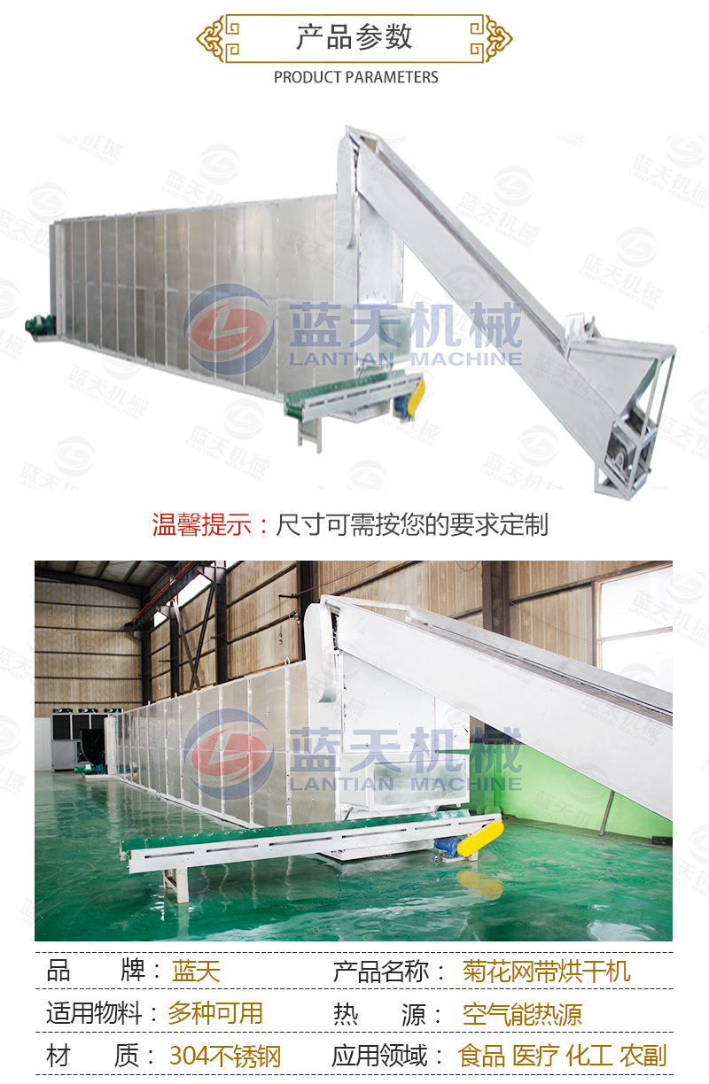 隨著生活水平的提高和壓力的增大,人們都逐漸注意養(yǎng)生,干菊花的市場(chǎng)是很大的。干菊花大多用于泡茶飲用,具有味濃香甜、去膩消食、醒腦益神之功能。菊花收獲的旺季,一直靠天晾曬菊花的菊農(nóng)就怕遇見(jiàn)陰雨天。隨著社會(huì)的進(jìn)步,科技的發(fā)展,智能烘干設(shè)備越來(lái)越深得用戶(hù)的滿(mǎn)意,菊花網(wǎng)帶烘干機(jī)讓菊農(nóng)徹底擺脫了靠天烘干收獲菊花的苦惱。同時(shí)牽扯到人們食用,菊花網(wǎng)帶烘干機(jī)工藝要求就很是嚴(yán)格的,因?yàn)楹芏嗑栈ㄐ枨笊虒?duì)于烘干后的菊花的色、香、形、味要求很高,要求干燥烘干后的菊花原色、原味、原樣,這就要求菊花成熟后烘干,菊花頭部分進(jìn)行強(qiáng)干燥烘干,而對(duì)菊花花瓣部分進(jìn)行弱干燥烘干。我們藍(lán)天菊花烘干機(jī)設(shè)備廠家主營(yíng)的烘干機(jī)采用智能化控制溫度,全自動(dòng)免人工操作,省時(shí)省力,讓菊花客戶(hù)打心里贊同和喜歡。