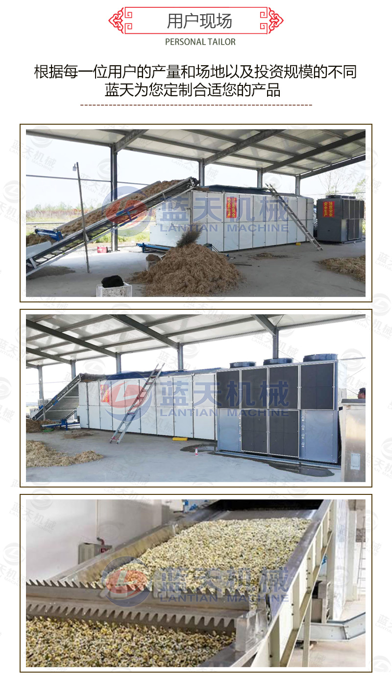 1、大型枸杞烘干機的尾部配冷卻段,可以對烘干出來的枸杞進(jìn)行及時冷卻。