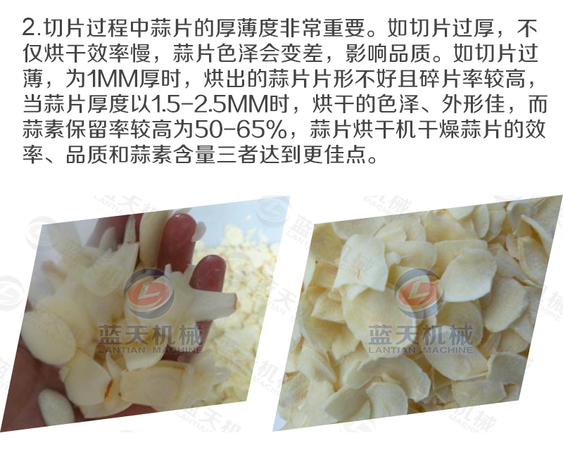 8、切片時(shí)可以選用切片機(jī),切出大蒜的厚薄均勻平整,這樣烘干后的大蒜片成品質(zhì)量均勻,不會(huì)參差不齊。