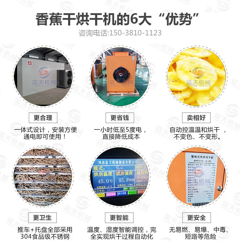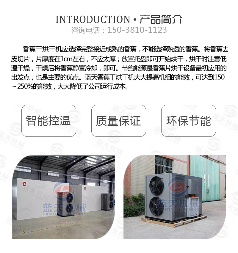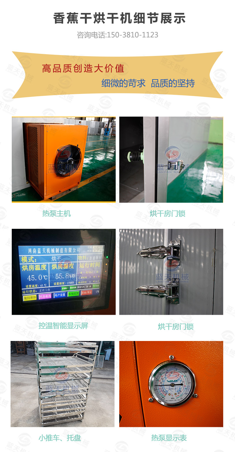 香蕉干烘干機(jī)使用的是熱泵空氣能加熱系統(tǒng),所以香蕉片烘干過(guò)程中受熱更加均勻。