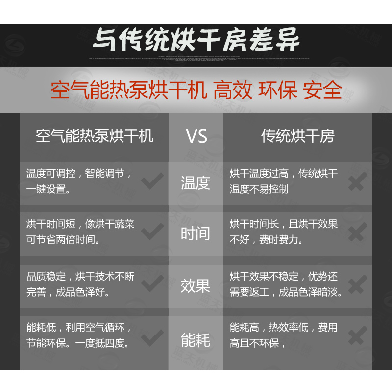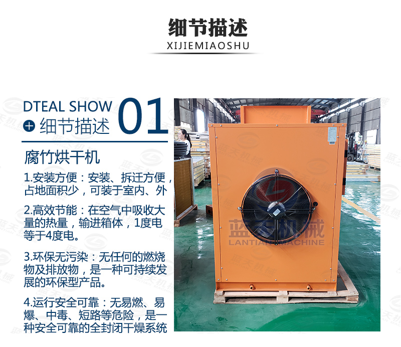 在很多地區(qū),腐竹烘干的市場(chǎng)也很大,近年來(lái),隨著腐竹生產(chǎn)技術(shù)和烘干技術(shù)的提高,使用熱泵腐竹烘干機(jī),不用燒煤、燒柴、不用鍋爐、蒸氣,只需少量的電能來(lái)驅(qū)動(dòng)壓縮機(jī)就可以獲得所需要的高溫?zé)崃?,并且安全衛(wèi)生、環(huán)保沒(méi)有污染、無(wú)廢氣排放、運(yùn)行電費(fèi)超低。