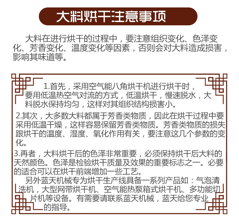 八角需要干燥脫水,老百姓們傳統(tǒng)的干燥就是看天氣,靠太陽(yáng)曬的方式,或者燒柴的方式較為普遍,這兩種方式的主要問(wèn)題在于,一,干燥時(shí)間長(zhǎng),一般在4天以上。二,所需干燥場(chǎng)地較大,干燥時(shí)間受天氣制約。第三,不節(jié)能環(huán)保。