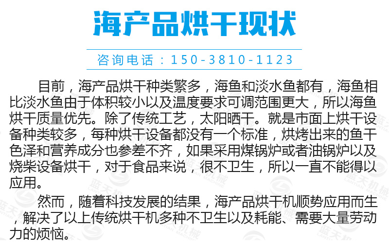 海產(chǎn)品烘干機(jī)設(shè)備不僅可用于烘干魚(yú)、蝦、海帶、殼類(lèi)等海鮮產(chǎn)品,還廣泛應(yīng)用于農(nóng)業(yè)、工業(yè)、食品、化工等行業(yè),能滿(mǎn)足現(xiàn)有80%以上的原材料的干燥烘干和深加工。