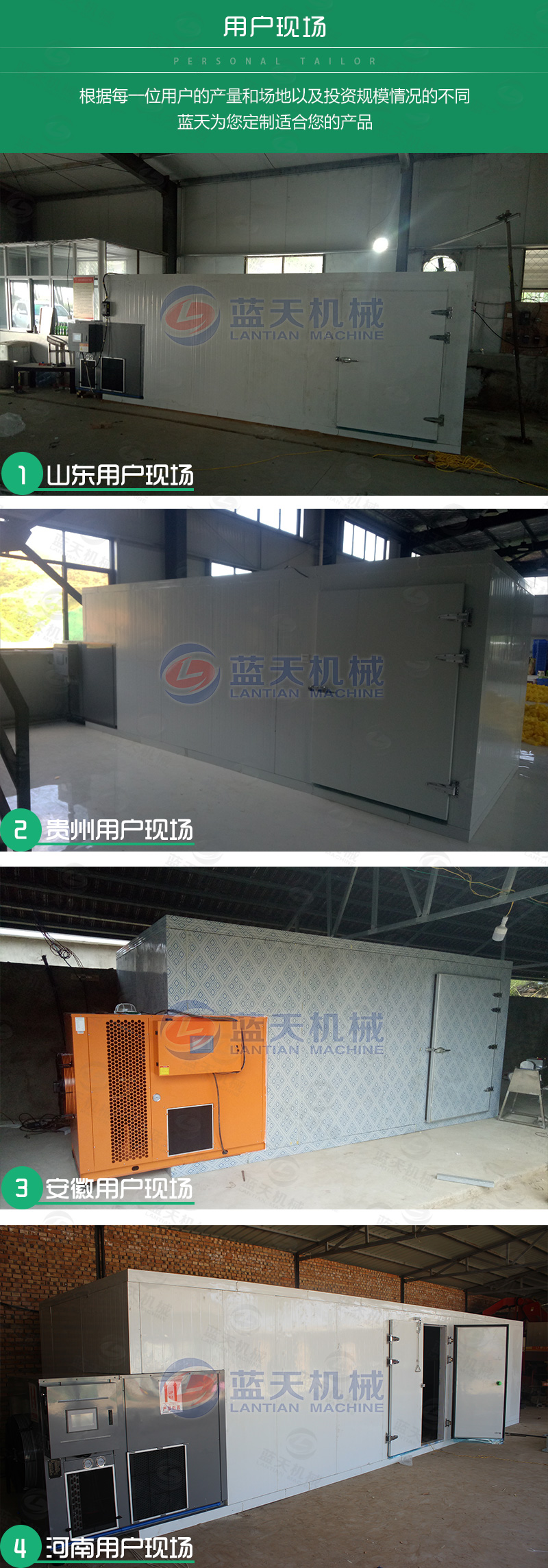 無花果鮮果含水以游離水、膠體水及化合水狀態(tài)存在,含水率達(dá)75-80%,含糖高,如果自然曬干時(shí)太陽光強(qiáng)度不夠,很難把無花是干透,使用空氣能無花果烘干機(jī)在于溫度、濕度、風(fēng)速、風(fēng)量可控。視塊狀大小一般初期1小時(shí)無花果烘干設(shè)備設(shè)置溫度宜在70-85℃的范圍,在短期內(nèi)使無花果水分大量的蒸發(fā),這4小時(shí)的排濕控制在50%,二段8小時(shí)的時(shí)間,溫度以60-70℃的范圍為基準(zhǔn),稍縮短排濕時(shí)間,濕度控制為30%,三段5小時(shí)的時(shí)間,溫度降低50-60℃,濕度繼續(xù)降低至10%;整個(gè)過程約18小時(shí),無花果含水率降到15%以內(nèi)。如為整顆烘干,需要的時(shí)間更長一些,先將果子均勻的鋪放在架子車上,推入烘干房干燥25-30小時(shí)后,再推出烘房外陰涼的地方放置24小時(shí),再推入烘房?jī)?nèi)進(jìn)行第二次的烘干。無花果烘干機(jī)24小時(shí)的烘干量視機(jī)型規(guī)格決定,少的以600-800斤一個(gè)批次,多的2000斤一個(gè)批次,10000斤甚至更大產(chǎn)能則考慮對(duì)吹及組合方式即可。這里提到產(chǎn)量,朋友們就會(huì)知道無花果烘干機(jī)的機(jī)型是有不同型號(hào)的,那無花果烘干機(jī)價(jià)格就是因型號(hào)不同而異了,這個(gè)需要了解客戶您的具體需求。