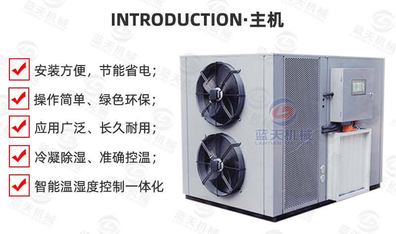 剝好的龍眼肉上托盤鋪好,保持好均勻的鋪放密度與托盤間距。托盤可采用不銹鋼車架與竹托盤的形式。在進入空氣能箱式龍眼烘干機設備前,根據(jù)空氣能龍眼烘干機智能PLC屏幕的提示,選好烘干除濕的模式,設置好溫度、濕度、風速等數(shù)據(jù),進行分段控制。