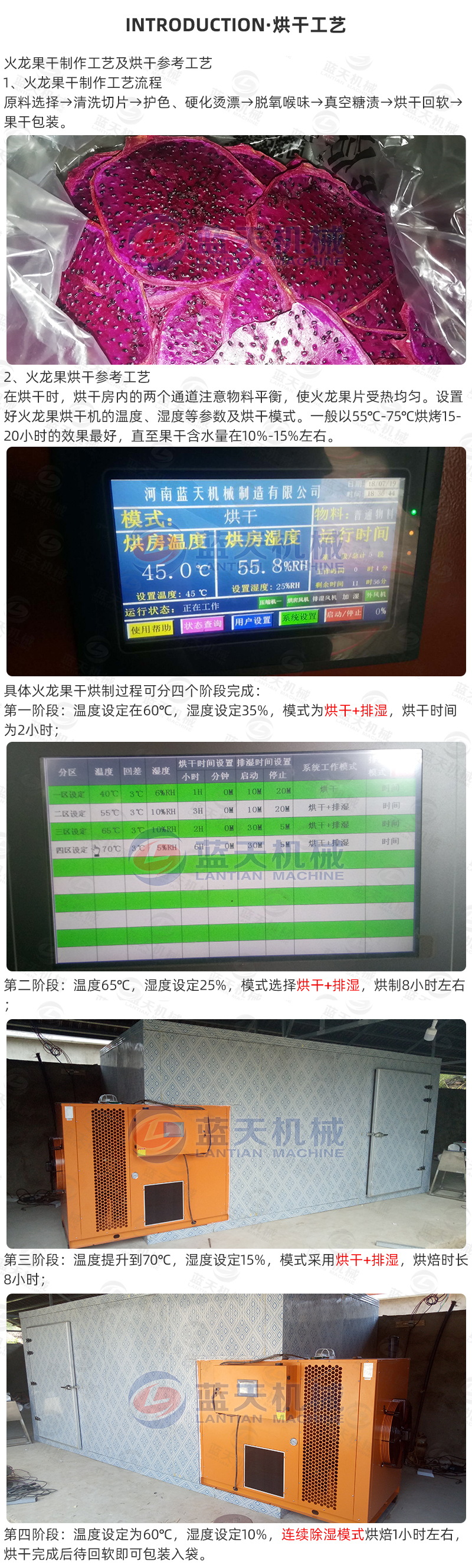 藍(lán)天火龍果烘干機制作火龍果片步驟: