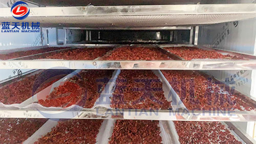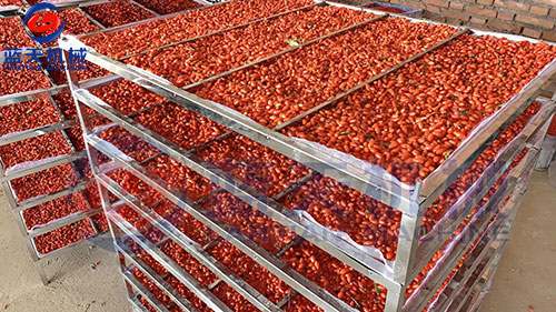 寧夏枸杞烘干機(jī)客戶烘干枸杞現(xiàn)場,客戶先把新鮮的枸杞鋪在物料托盤上,枸杞鋪好后,將物料盤推進(jìn)寧夏枸杞烘干房設(shè)置好對應(yīng)的烘干參數(shù)進(jìn)行烘干。